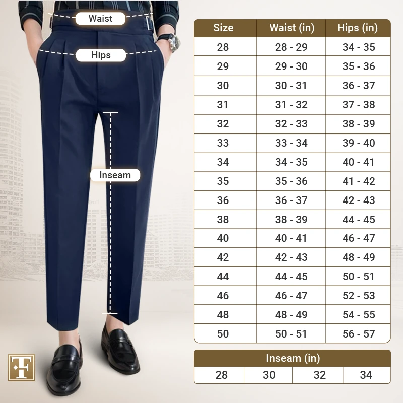 TimelessForm offers 4 inseam options for your suitable length. Should you prefer a more modern style, go for a shorter inseam than usual.
