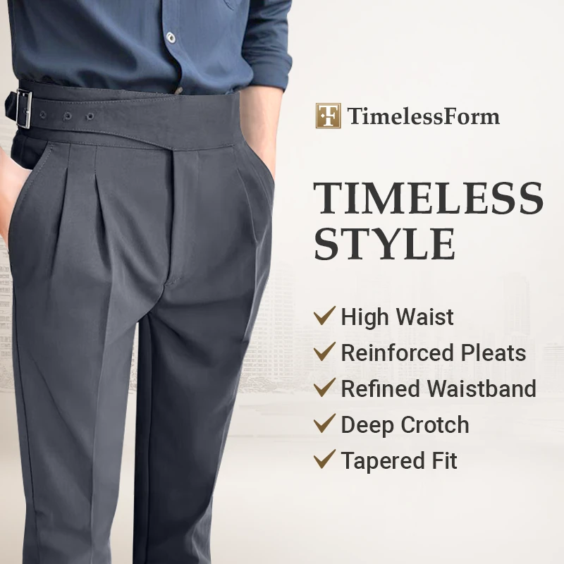 TimelessForm's extra pleats and high-rise design provide enhanced leg room, allowing for effortless, unrestricted movement with every step.